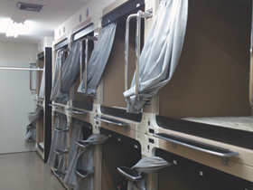 夜は交替で仮眠をとることができるって知ってるかな。ただし、交代で通信司令室に待機するので、全員一緒に仮眠はしないよ。 女性専用の仮眠室もあります。